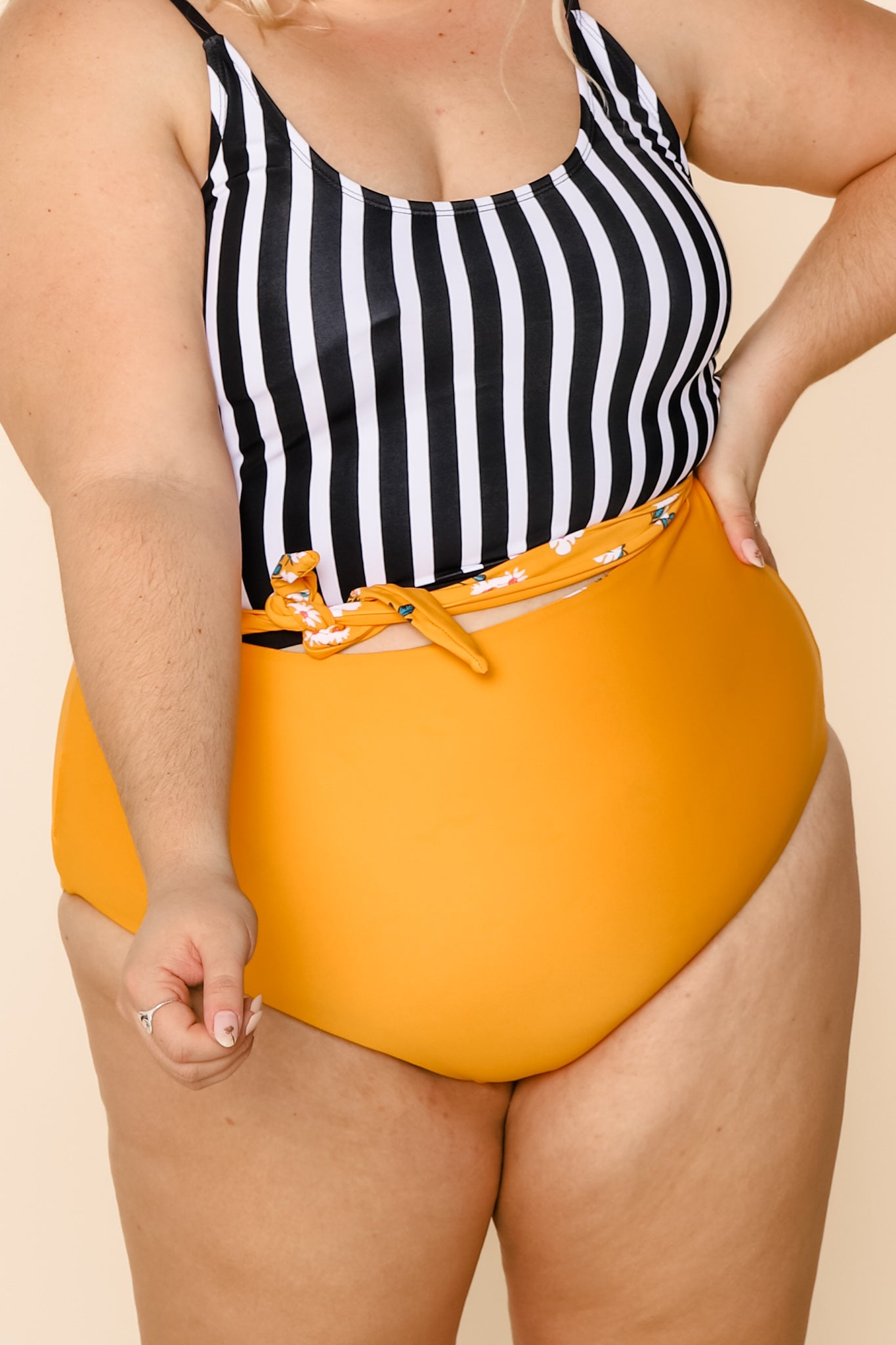 This high-rise cut offers gentle support through the midsection while creating a flattering, balanced shape.