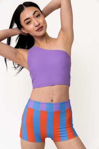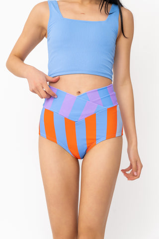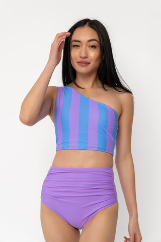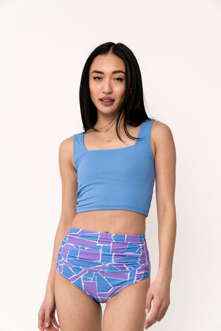 The Geometric Collection is all about bold color and clean lines—think luminous purples, deep blues, and vibrant orange stripes in our classic, modest silhouettes. Mix and match high-rise Wave Bottoms, ruched Barefoot Bottoms, and reversible Leisure styles with supportive Traveler, Coast, Destination, and Tide tops featuring luxe ribbed and textured fabrics. Every piece is fully lined, designed to stay put, and made to flatter, so you can chase waves, lounge poolside, or travel light with confidence and color.