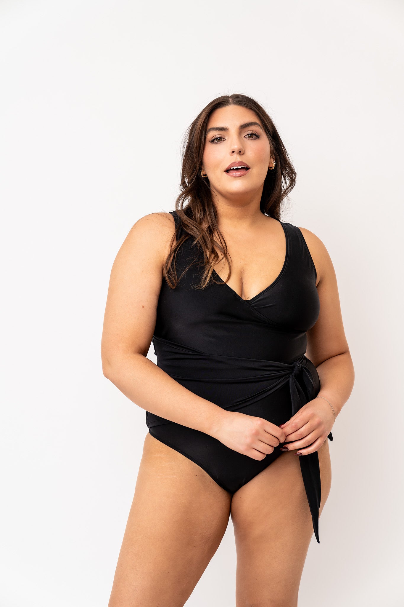 The Palm Beach swimsuit features a faux wrap design in both the front and back, creating a flattering silhouette that accentuates your natural curves. This elegant design element adds a touch of sophistication, providing a timeless look that is both stylish and functional. The faux wrap detail not only enhances the visual appeal of the swimsuit but also ensures a secure and comfortable fit, allowing you to move with ease and confidence.
