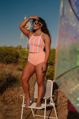 The Summer Fun Collection is all about bright, happy swim days—think sherbet tones, pretty pinks, and playful floral prints that feel like sunshine in fabric. From supportive mix-and-match tops to flattering high-rise and full-coverage bottoms, each piece is designed for all-day comfort, real coverage, and easy movement at the pool or beach. Whether you’re chasing kids in the waves, lounging with a mocktail, or twinning with your mini, Summer Fun keeps things vibrant, comfy, and completely carefree.